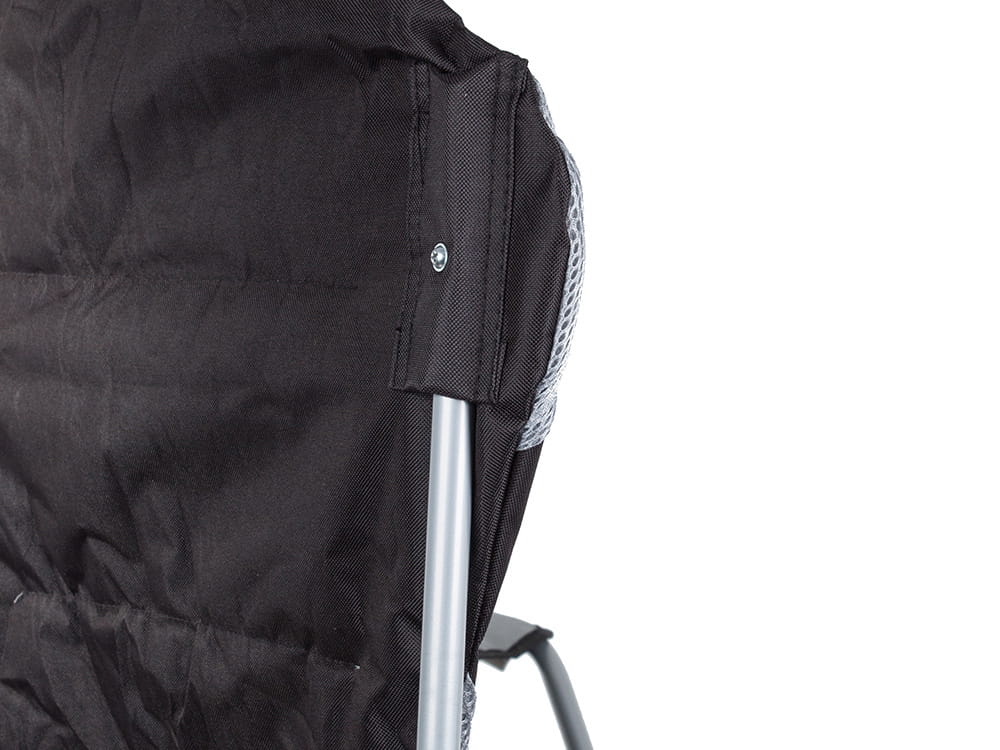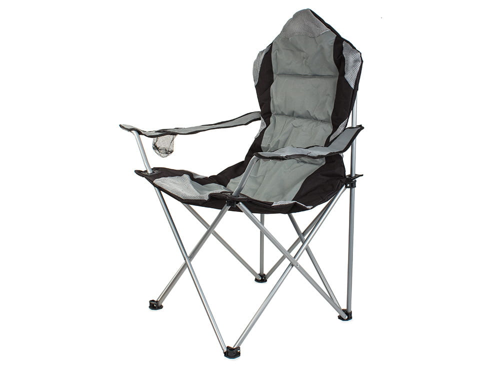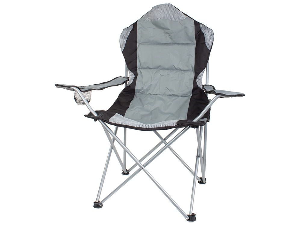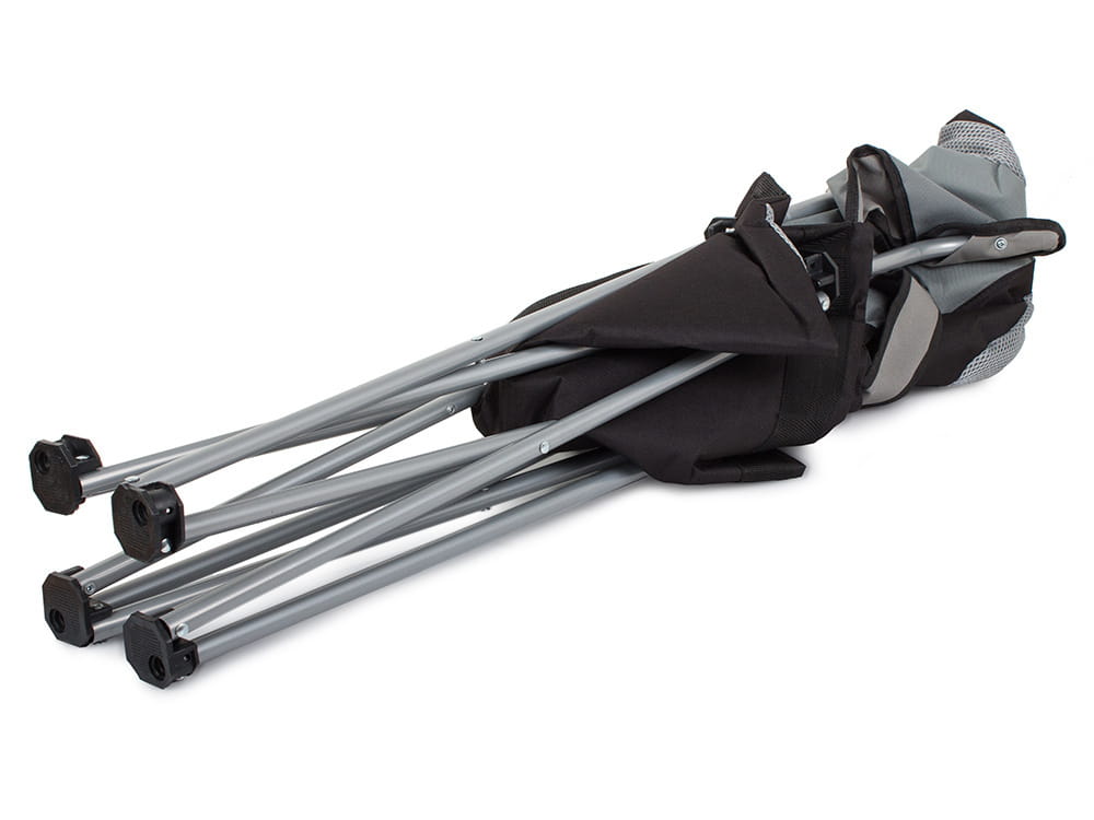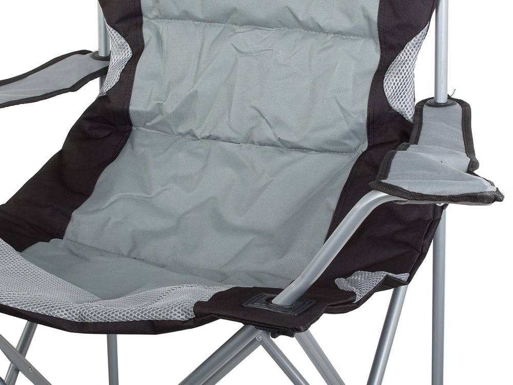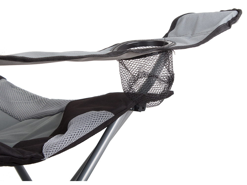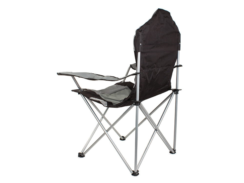 Krzesło posiada w podłokietniku schowek na szklankę, puszkę itp. Po złożeniu zajmuje mało miejsca.