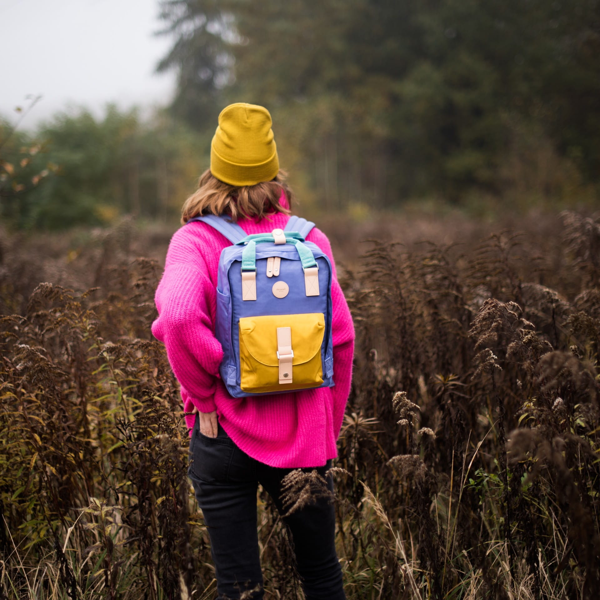 Plecak Himawari fioletowy, musztardowy to funkcjonalny plecak marki Himawari w uroczych zestawieniach kolorystycznych. Wykonany z wysokiej jakości materiału, odpychającego krople wody. Główna komora zamykana na zamek.Wewnątrz podszewka, wiele funkcjonalnych przegródek np. na telefon, klucze oraz większa przegroda na laptop (14,0").
