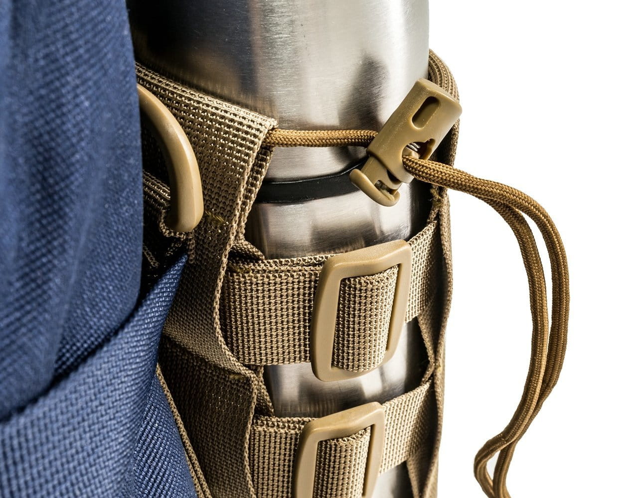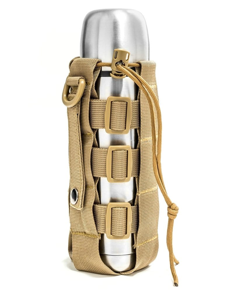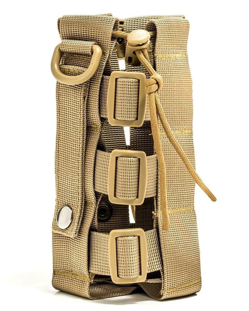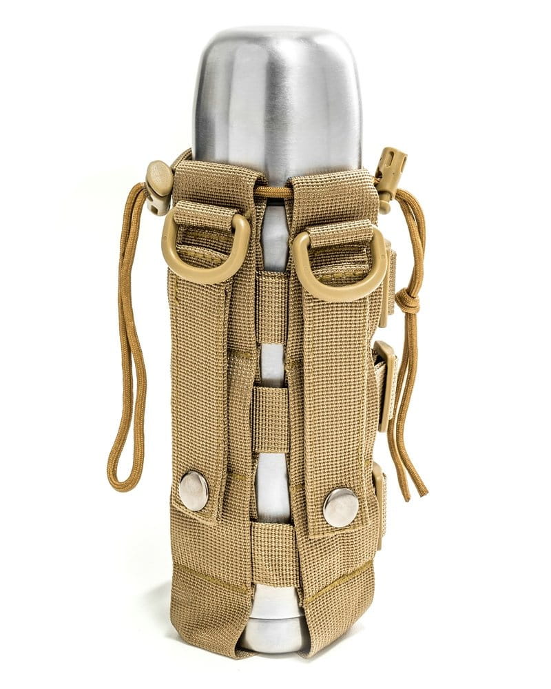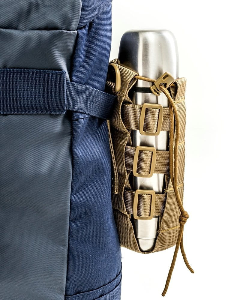 Elegancki, a przy okazji bardzo praktyczny pokrowiec na butelkę czy termos wszelkie wyprawy bliższe i dalsze. Bez problemu i szybko przytroczysz go do plecaka czy spodni. Dzięki ściągaczom dopasujesz idealnie do wielkości Twojej butelki (możesz przenosić zarówno duże jak 1,5 l czy małe np. 0,3 l) czy termosu. Do plecaka przyczepisz go łatwo i niezawodnie dzięki kompatybilności z systemem MOLLE, ale też są uszka, by zastosować zwykłe karabińczyki.